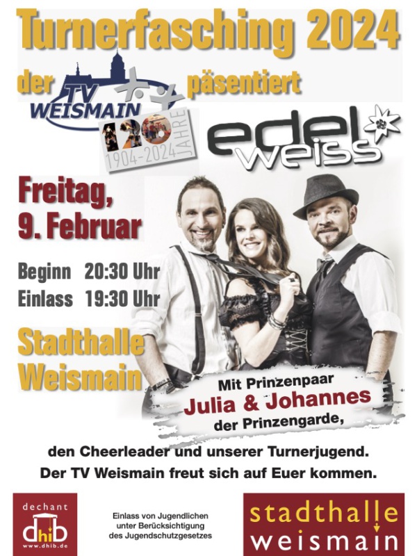 Im Rahmen unseres 120jährigen Jubiläums veranstalten wir erstmals einen Tanz in den Mai. Wir freuen uns auf viele Besucher aus Nah und Fern, die, bei Musik der Partyband Bamberg Spezial, den Mai begrüßen. Unsere Turnerjugend präsentiert zur Auflockerung ein oder zwei Tänze. Zu einem fröhlichen Tanz / Partyabend gehört natürlich auch eine Bar. Unser Spezial … Lesen Sie mehr…